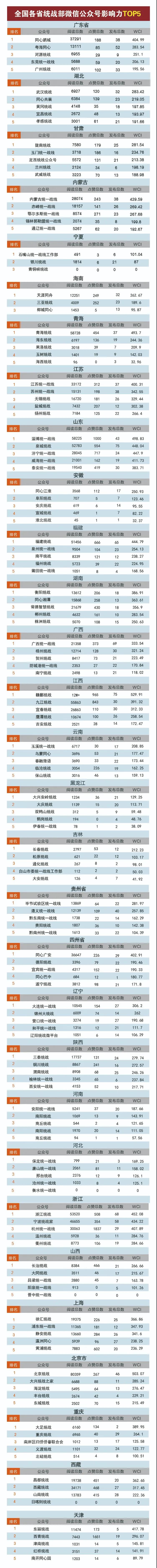 数据显示6月份有185个微信公众号处于活跃状态(月发布次数大于5),榜单展示前50位(完整榜单见附件)。其中进入微信传播指数前五名的统战部公众号是:山东统一战线(sdtongzhan)、赣鄱统战(ganpotongzhan)、北京统战(beijingtongzhan)、淄博统一战线(zbtyzx)、青海统战(qinghaitongzhan)。其中,山东统一战线(sdtongzhan)以文章发布量88篇,阅读总数95W+,WCI指数939.39的成绩再次占据榜首。另外,总榜单中排名上升幅度最大的前三位是荆楚统战、武汉统战、西藏统战,分别上升37601、30678、28130位。